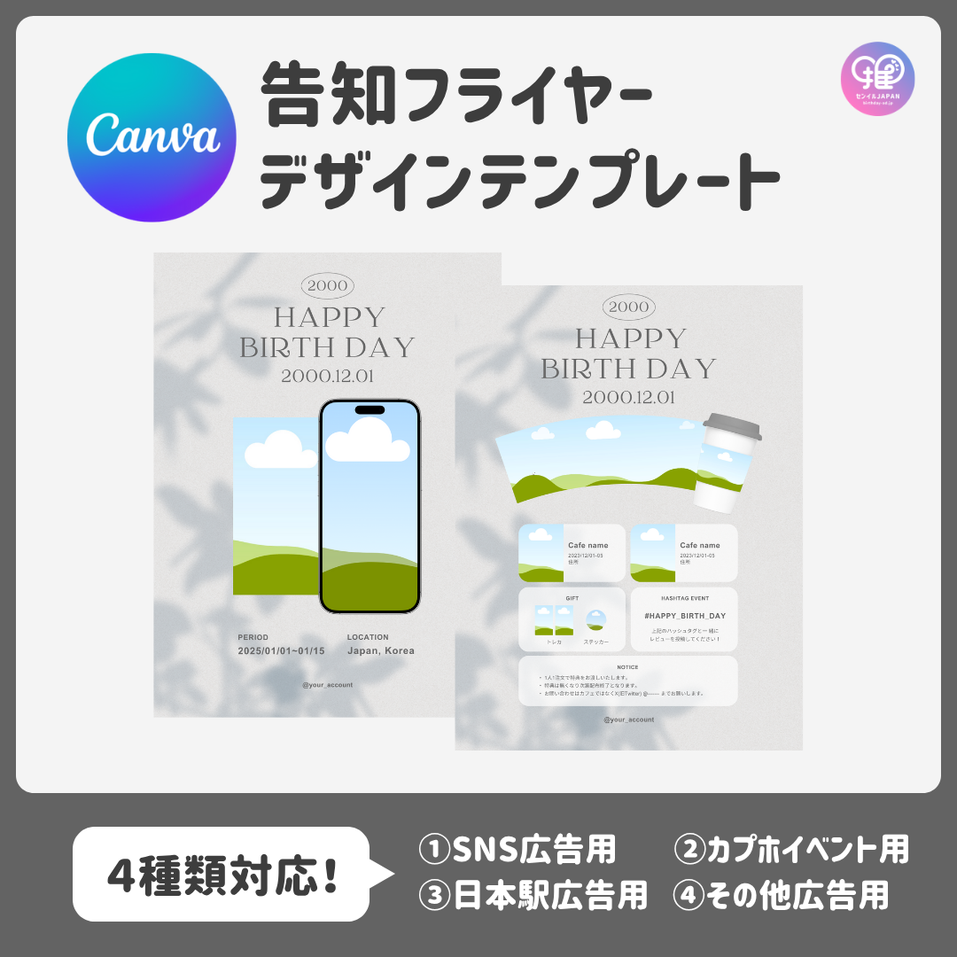 ・特殊な漢字などは、テンプレートご購入前に「canvaアプリ」で使用できるかご自身でお確かめください。